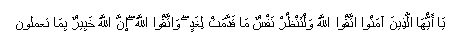 “Wahai orang-orang yang beriman! Bertakwalah kepada Allah, dan hendaklah setiap diri memperhatikan apa yang telah diperbuatnya untuk hari esok (akhirat).” (QS. Al-Hasyr: 18).