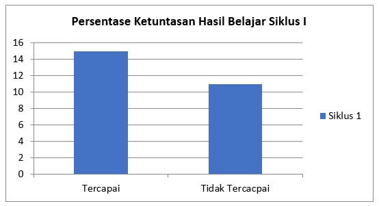 Dari 26 peserta didik yang mengikuti tes pada akhir siklus I, sebanyak 15 orang siswa (57,69%) telah mencapai Kriteria Ketercapaian Tujuan Pembelajaran (KKTP), sedangkan 11 orang siswa (42,31%) masih belum mencapai ketuntasan. Hal ini menunjukkan bahwa meskipun sebagian besar siswa sudah mulai memahami materi IPAS melalui penerapan model PJBL berbantuan media poster, persentase ketuntasan belajar belum memenuhi target ketuntasan klasikal yang diharapkan (≥75%).