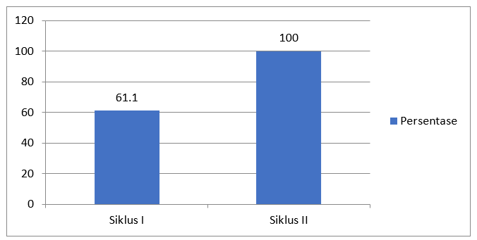 Keberhasilan peserta didik dalam pembelajaran pada umumnya dilihat juga dari pengelolaan pelaksanaan pembelajaran pada kegiatan pendidik. Dalam hal ini terlihat peningkatan dari siklus I ke siklus II, dapat dilihat pada diagram berikut ini: