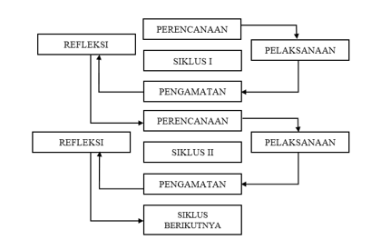 Prosedur penelitian mengikuti model PTK Kemmis & McTaggart melalui satu rangkaian siklus berulang: perencanaan, pelaksanaan, observasi, dan refleksi. Saat berkolaborasi dengan mitra untuk menentukan kriteria keberhasilan, para peneliti menyusun rencana pembelajaran, permainan edukatif berbasis kontekstual berbantuan Wordwall, sumber belajar, dan instrumen (pra-pasca-tes dan lembar observasi) selama fase perencanaan. Pelaksanaan tindakan (minimal dua sesi per siklus, ±60 menit) berfokus pada pengenalan angka dalam konteks dunia nyata. Guru menetapkan tugas, menyusun pekerjaan siswa dalam kelompok-kelompok kecil, mendorong pemecahan masalah dan eksplorasi menggunakan benda nyata dan permainan Wordwall, lalu memberi mereka kesempatan untuk menyelesaikan permainan. Untuk mencatat hasil tes, partisipasi, fokus, dan ketepatan pengucapan serta penunjukan simbol angka, dilakukan observasi sistematis. Rekan kerja juga mencatat dinamika kelas dan kesulitan-kesulitan baru. Refleksi dilakukan dengan melihat skor tes dan data observasi untuk mencapai pencapaian berbasis kriteria. Setelah refleksi, dilakukan perbaikan terhadap materi, proses, dan variasi aktivitas Wordwall, serta materi, media, dan pengelolaan kelas, yang akan diujicobakan pada siklus berikutnya hingga indikator keberhasilan terpenuhi.