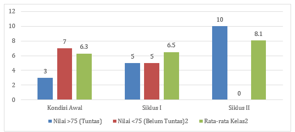 Figure 2. Perbandingan Hasil Kondisi awal, Siklus I dan Siklus II