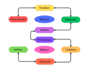 Dalam rangka meningkatkan kompetensi guru dalam membangun lingkungan belajar inklusif melalui pelatihan terstruktur berbasis Problem Based Learning (PBL), penelitian ini memanfaatkan Penelitian Tindakan Sekolah (PAS) atau yang dikenal juga dengan Model Penelitian Tindakan Sekolah Kemmis & McTaggart. Metode deskriptif kualitatif digunakan untuk menganalisis data dan mendeskripsikan apa yang dilakukan guru selama pelatihan, sementara metode deskriptif kuantitatif digunakan untuk mengukur seberapa besar peningkatan kemampuan guru berdasarkan skor mereka di setiap siklus. Kami memilih Model Kemmis & McTaggart karena sistematis, fleksibel, dan memungkinkan peningkatan berkelanjutan melalui siklus berulang yang mencakup perencanaan, tindakan, observasi, dan refleksi. Dengan demikian, guru terlibat aktif dalam menyusun dan meningkatkan kualitas rencana pembelajaran secara nyata.Secara keseluruhan, empat tahapan dalam PTS tersebut membentuk suatu siklus yang digambarkan sebagai berikut.