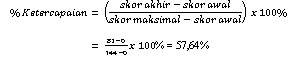 Berdasarkan hasil yang dipeorleh, maka persentase ketercapaian ialah sebagai berikut: