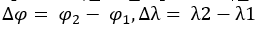 1) For example, point 1: φ_1, λ_1; point 2: φ_2, λ_2, where the angles are in radians.