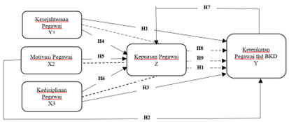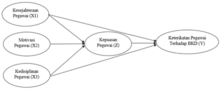 Maka dari itu, berdasarkan peran dari BKD yang besar terhadap pegawai dan juga krusialnya BKD bagi pegawai negeri sipil yang bekerja untuk pemerintah daerah dan berdasarkan penemuan yang dijabarkan oleh peneliti sebelumnya, peneliti hendak melakukan penelitian mengenai analisa hubungan antara kesejahteraan pegawai, tingkat motivasi dan kedisiplinan pegawai terhadap keterikatan pegawai terhadap BKD. Dalam penelitian ini, berdasarkan penjabaran yang sudah dilakukan sebelumnya, peneliti menggunakan variabel kepuasan pegawai terhadap keberadaan BKD sebagai variabel interving dalam penelitian ini.