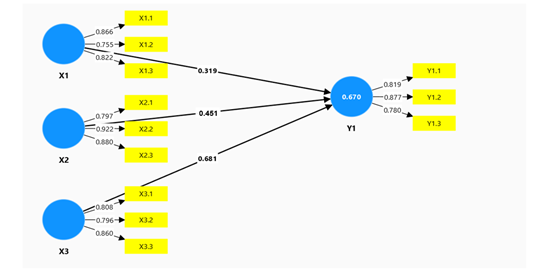 Berdasarkan output PLS, didapatkan gambar sebagai berikut:
