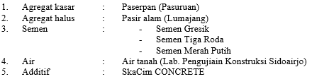 Kualitas beton tergantung pada bahan bahan penyusunya. Namun untuk membuat beton dengan kuat tekan tinggi sesuai keinginan maka kurang bagus kalau hanya mencampurkan semen portland atau jenis semen yang lain, agriegat kasar, agriegat halus, dan air. Pieningkatan kualitas campuran bieton akan mienghasilkan bieton diengan kuat tiekan tinggi atau maksimum.Piemakian bieton yang bierkinierja tinggi mierupakan matierial yang sudah banyak digunakan dalam pielaksanaan struktur bangunan brtingkat tinggi