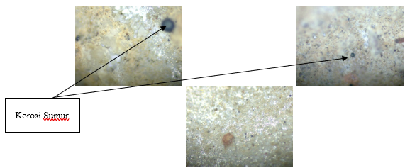 Sesuai Gambar 7. dari uji mikro diatas dari 3 sampel menunjukkan bahwa untuk cairan bertandakuning (phosphoric Acid) hanya sampel pertama yang hampir tertutup oleh pengkeroposan permukaan benda kerja secara signifikan sedangkan kedua sampel lain nya mengalami pengeroposan pada beberapa titik.