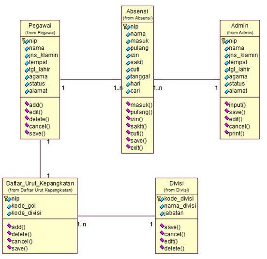 Hubungan antar kelas dalam diagram ini ditunjukkan melalui asosiasi, di mana kelas Karyawan berelasi dengan kelas Absensi dalam hubungan satu ke banyak (one-to-many), karena setiap karyawan dapat memiliki banyak data absensi 11. Sementara itu, kelas Admin berhubungan dengan kelas Laporan, yang memungkinkan admin untuk mengakses dan mengelola laporan kehadiran berdasarkan data yang telah tersimpan dalam sistem.Dengan struktur ini, Class Diagram memberikan gambaran jelas tentang bagaimana sistem Absensi Karyawan dikelola, memastikan bahwa setiap data yang tercatat dapat diakses, diverifikasi, dan digunakan secara efisien dalam proses administrasi kehadiran 12.