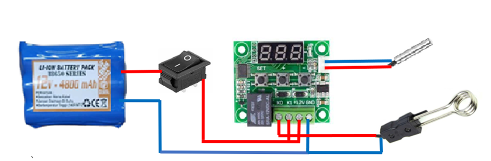 Figure 2. 2.1 gambar rangkaian perangkat keras terdapat komponen Thermostat Digital XH-W1209 dan terdapat komponen lainya seperti Baterai Lithium 12 Volt, Sensor suhu, Saklar Thermocouple 12 Volt, Sensor Suhu.