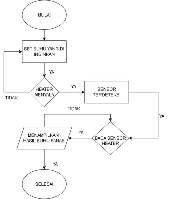 Gambar 2.4 monitoring sensor suhu dengan mealkukan set suhu yang diinginkan kemudian heater menyala, sensor heater terdeteksi lalu terbaca oleh sensor dan menampilkan suhu panas.