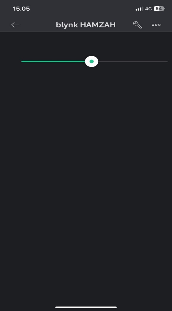 Gambar 6. Tampilan pada Blynk berupa slider yang dapat digeser sesuai dengan persentase dan digunakan mengatur kecepatan motor pada pompa air melalui alat yang sudah dibuat.