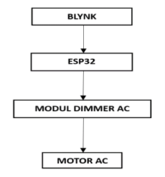 Gambar 1merupakan gambar blok diagram sistem yang sedang di rancang sekarang dengan menggunakan ESP32 dan menggunakan aplikasi yaitu Blynk. Yang mana Blynk yang ada dalam smartphone sebagai tombol pengatur kecepatannya yang mana ESP32 akan mengirimkan sinyal kepada dimmer AC untuk diteruskan ke output yang mana berpengaruh pada putaran motor AC pada pompa air tersebut.