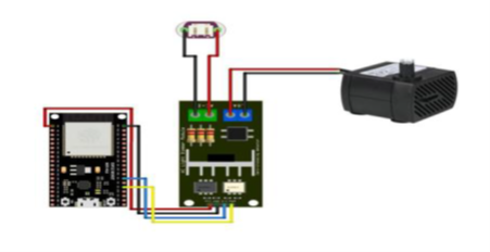 Gambar 2 merupakan desain hardware dari alat yang mana menggunakan ESP32 sebagai minimum sistem yang digunakan, AC Dimmer Light yang mana berfungsi sebagai pengatur kecepatan terhadap output motor pada pompa air, dan terdapat output berupa pompa air mini sebagai objek penelitian.