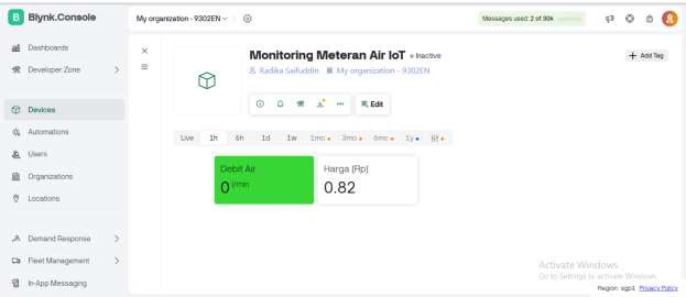 Gambar8.Pengujian Harga Debit Air dari Aplikasi Blynk